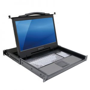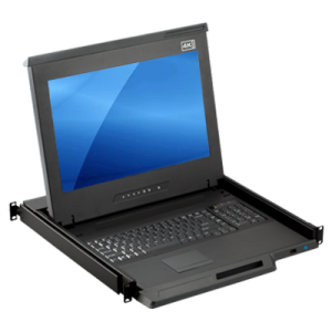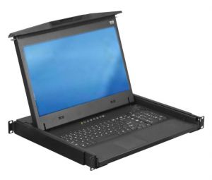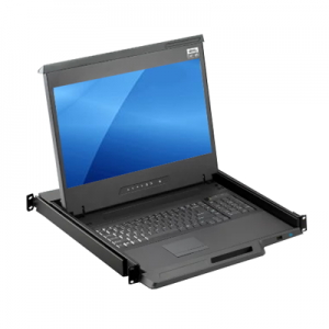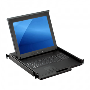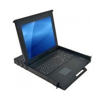 Rack LCD consoles with a 17 inch industrial LCD panel and keyboard with touchpad/trackball integrated into a 1U low profile rack drawer. The monitor drawer comes with a VGA video input, combo free USB or PS/2 type connector, and built-in pull out slide rail.