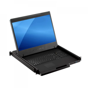 17" / 19" / 20.1" rack KVM consoles with an integrated 16-port or 32-port Matrix Cat6 KVM switch, industrial LCD monitor, and a 104-key keyboard with touchpad in a 1U high rack drawer designed for 19" wide rack cabinets.