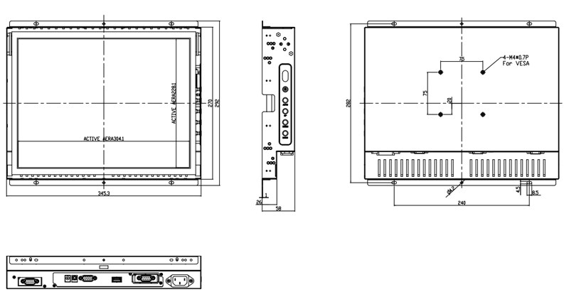 Open frame monitor with front mounting bracket