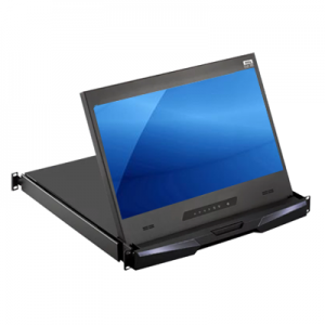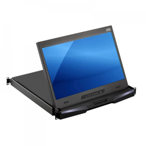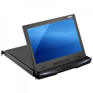 Rack monitor drawers featuring a 1U pull-out drawer design for industrial applications, data centers, and space-limited applications. Housed in a 1U space-saving drawer with a flip-up monitor design, the consoles provide convenient and easy access to the system when mounted in a rack cabinet.  The rackmount monitors are available in sizes from 16.2 inches up to 20.1 inches and feature VGA / DVI-D / HDMI video input and optional touch screen displays.