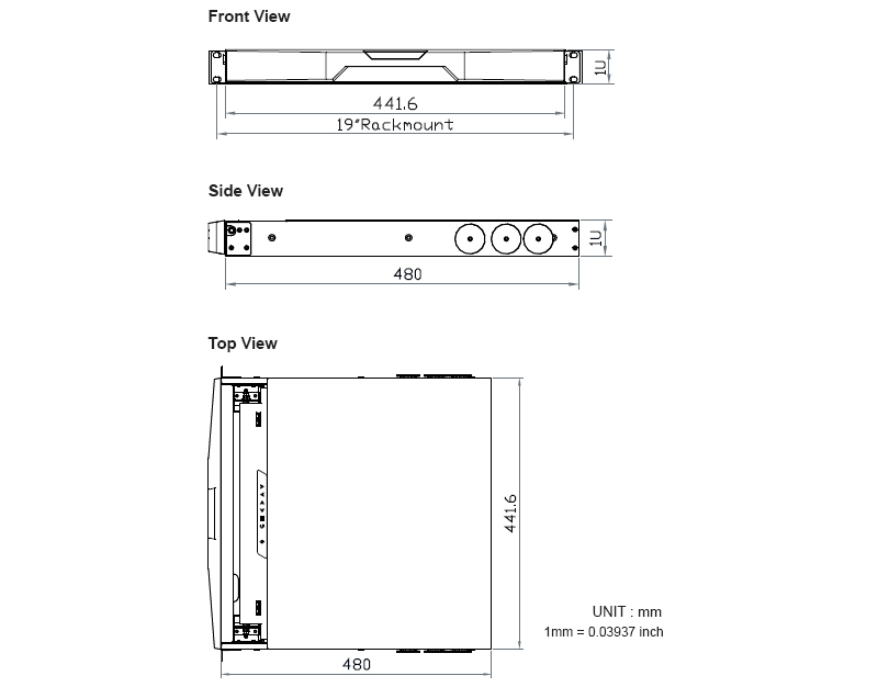 Auto-sensing 100 to 240VAC, 50 / 60Hz power input
